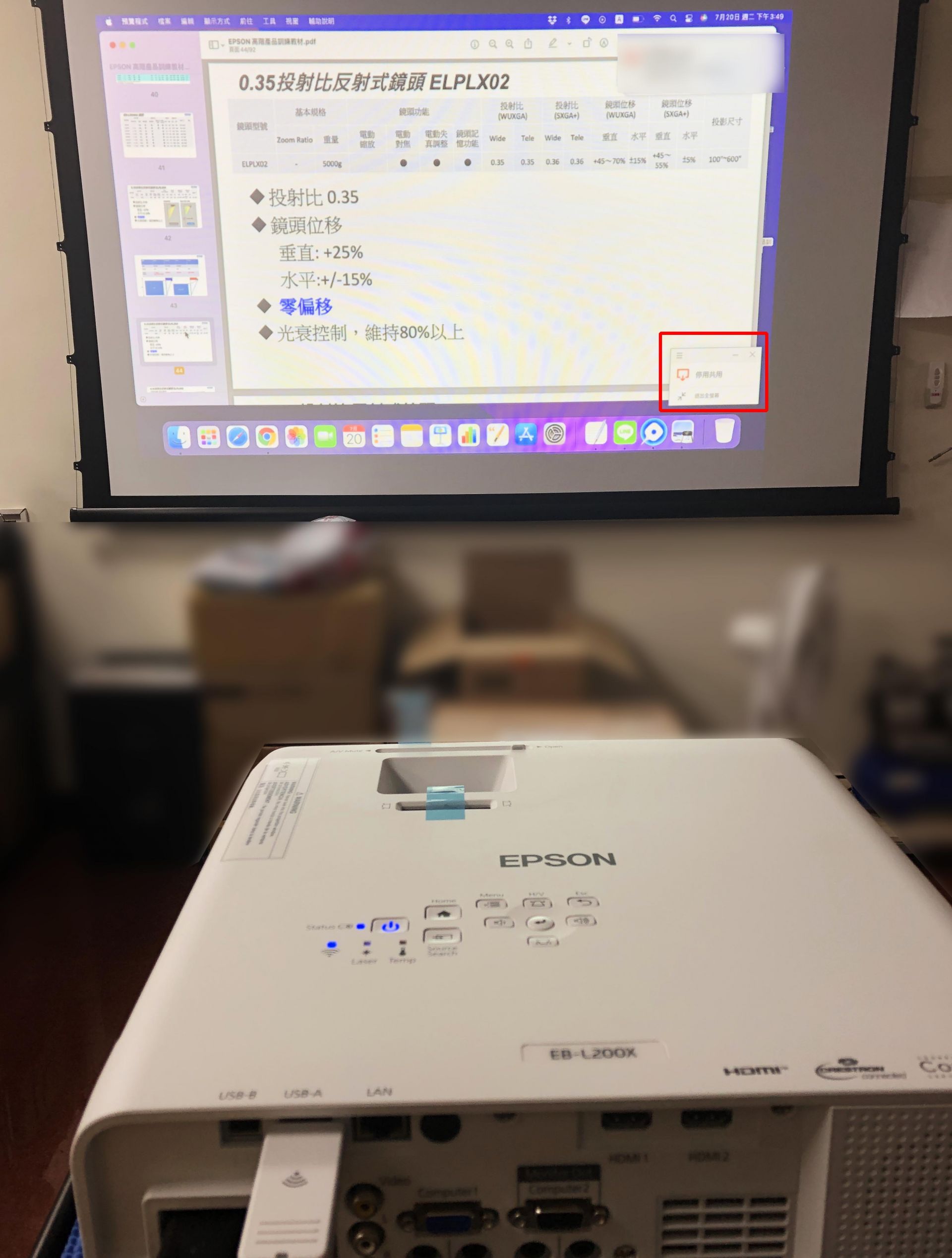 EPSON EB-L200SX 雷射短焦投影機 新機測試,有內建鏡射投影,亦可加購無線簡報系統