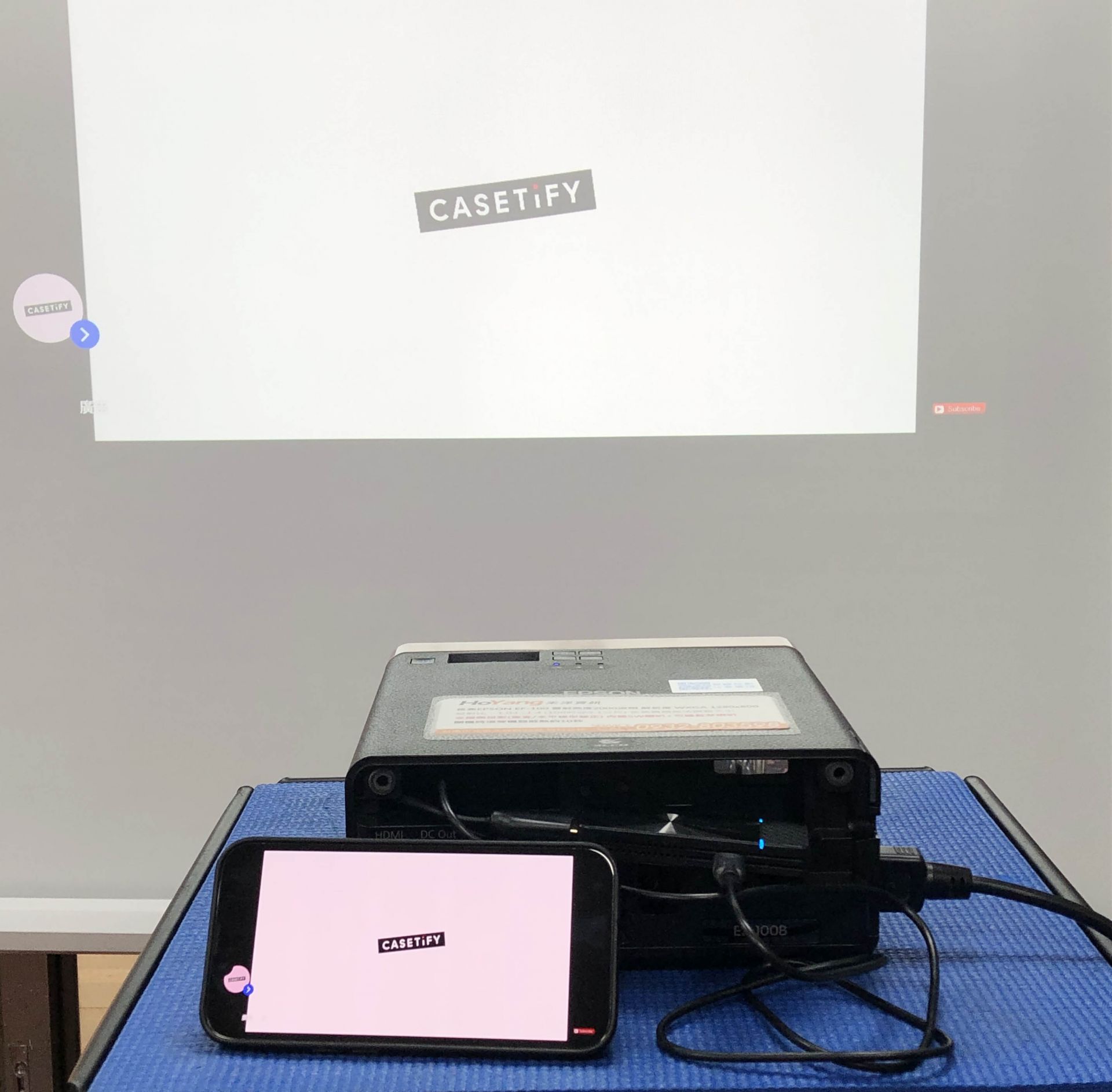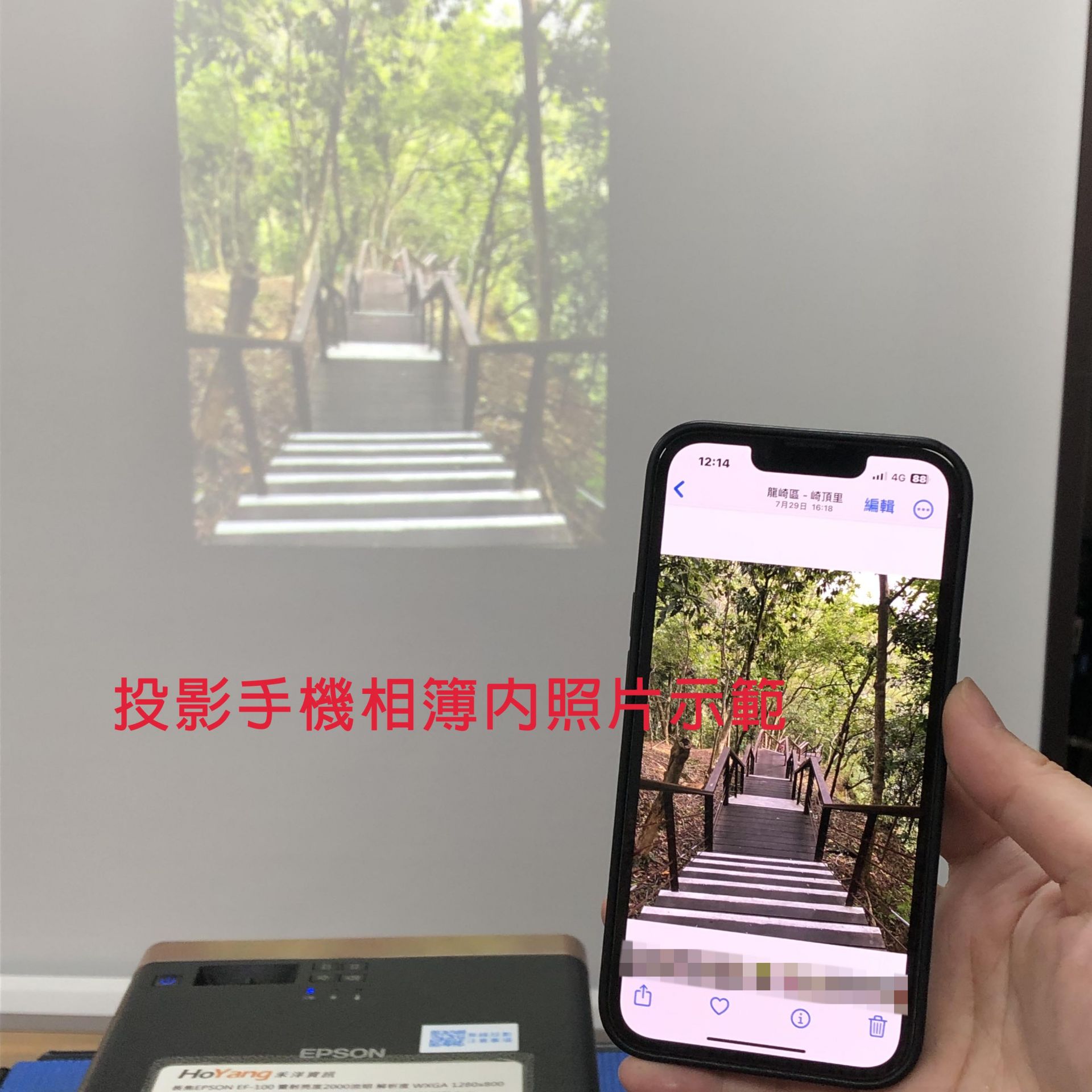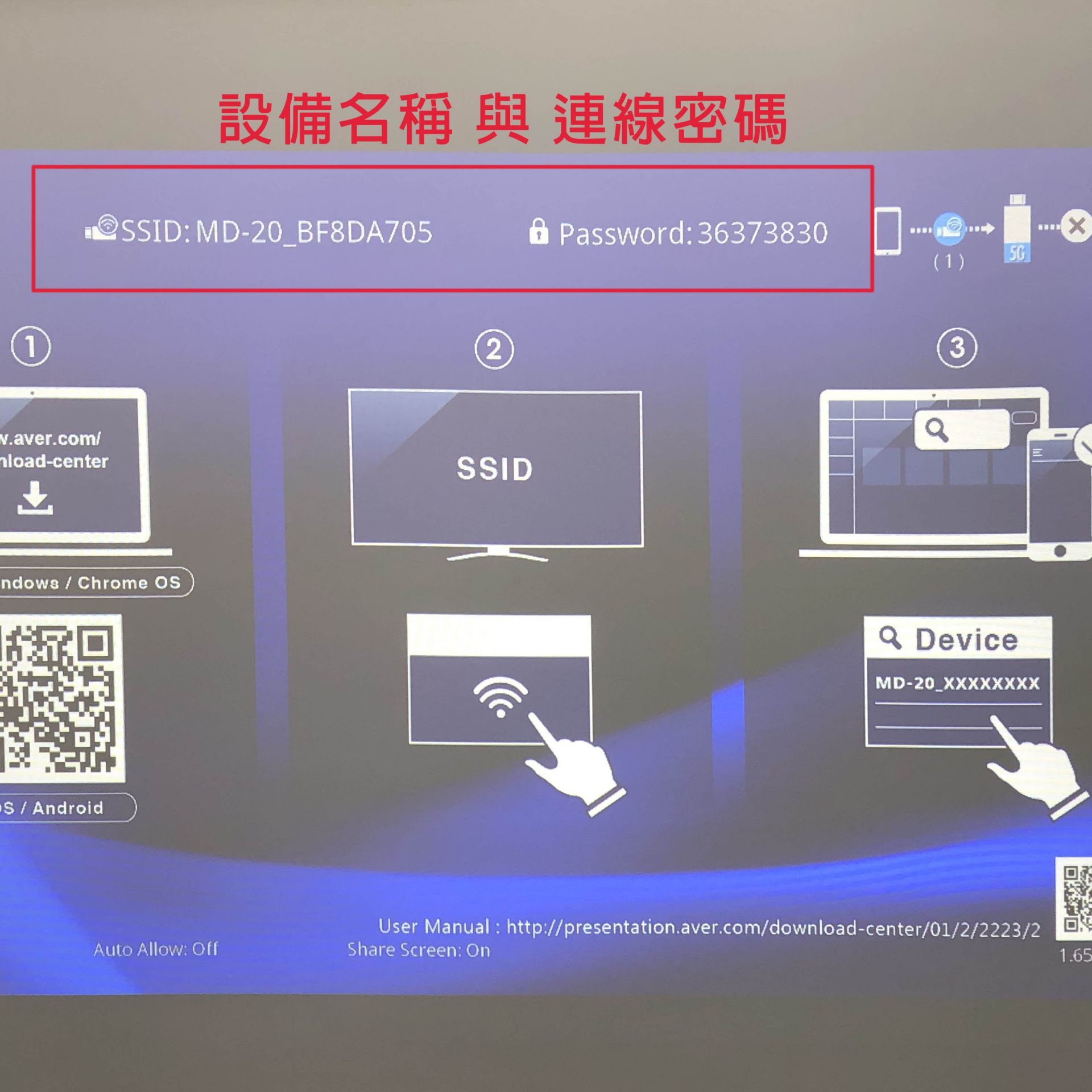20230927 IPHONE 13蘋果手機無線投影示範操作 Airplay 螢幕鏡像輸出示範設備:Iphone 13 與 AVER MD-20無線影音傳輸器 與EPSON EF-100投影機特別提醒:鏡像輸出=畫面同步,無線投影棒本身沒有網路功能~手機如須上網需使用手機本身的4G網路喔。